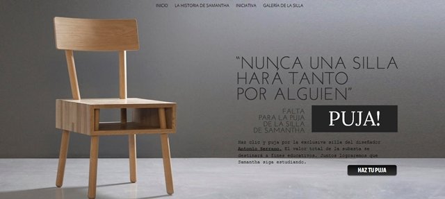 Esta historia es una más fruto de la crisis económica acuciante y verídica en nuestro país, aunque en este caso todo parece indicar que tendrá un final ciertamente más afortunado. Todo porque Luis María García Moreno, creativo publicitario de la agencia junto con el resto de sus compañeros activaron con ella esa bombilla solidaria que todos tenemos pero solo es capaz de mover los grandes retos. Y así nació la web y la puja «La silla de Samantha».