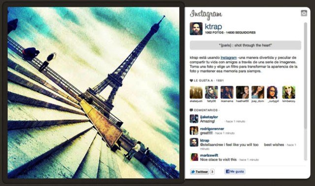 Subir el contenido a la red no será muy difícil. Basta con ir directamente al perfil, escoger la fotografía y junto al “me gusta” aparece un nuevo botón con el que se desplegará un código para copiarlo y pegarlo en el código HTML en la página en la que se quiere incluir.