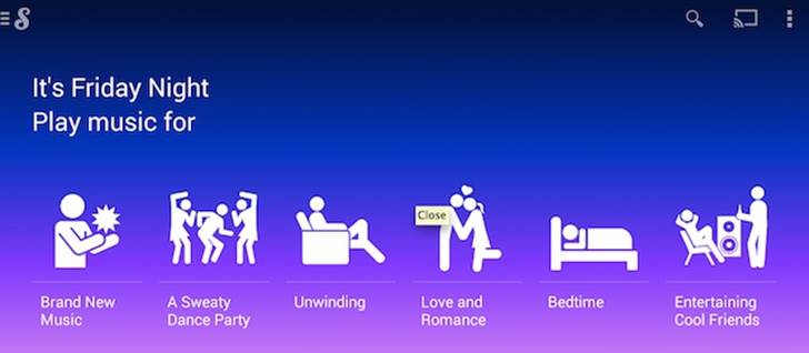 También, Songza es capaz de proporcionar canciones adaptadas a una actividad concreta, como deportes, gastronomía, transporte, opciones que no aparecen en Google Play Music.